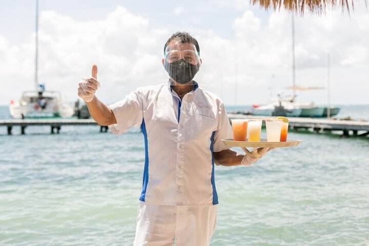 Zarpa una vez más hacia Isla Mujeres y atraca en su bullicioso centro de la ciudad. Almuerza en un club de playa lleno de casilleros, regaderas, baño, vestidores y dos albercas grandes. Disfrute de una magnífica vista del Caribe mientras come un refrigerio en el buffet internacional y bebe bebidas de la barra libre.