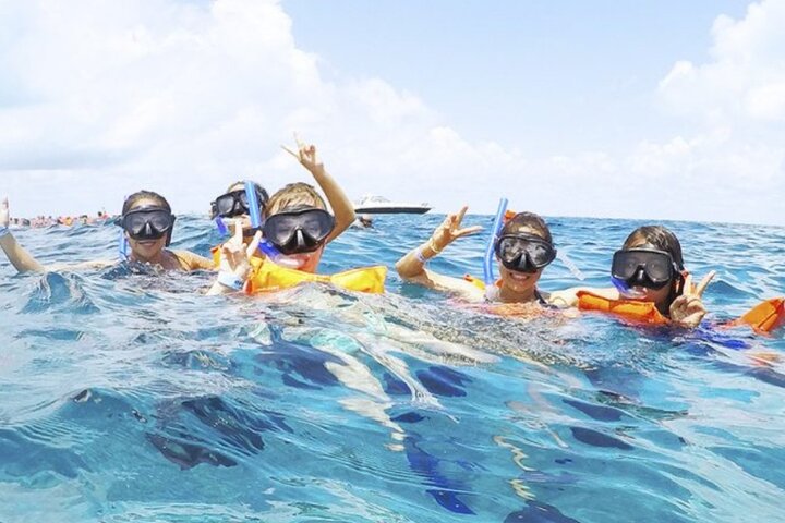 Suba a bordo de un catamarán con destino a Isla Mujeres, una isla pintoresca frente a la costa de Cancún conocida por sus hermosas playas y el esnórquel y el buceo de clase mundial. Disfrute del esnórquel en el abundante arrecife Punta Sam. Los guías a bordo te proporcionarán todo el equipo necesario y te mostrarán los mejores lugares del arrecife.