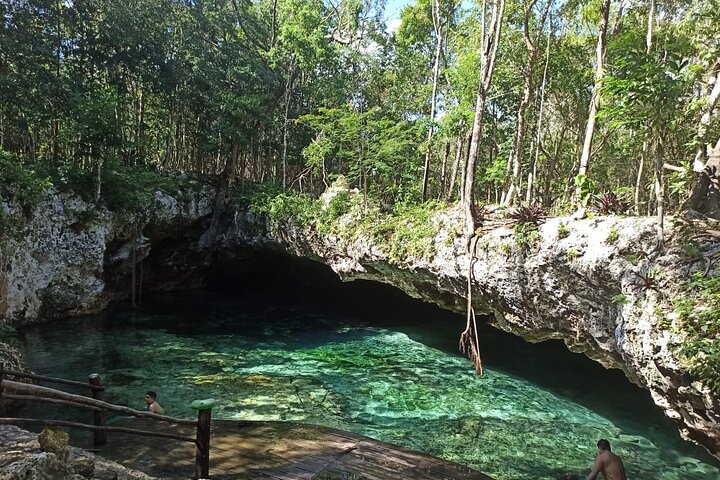Continue on to the Mayan community where you will enjoy a local drink and a traditional lunch. You’ll have time to swim at cenotes (sinkhole) Chen ha & Mariposa and refresh in the water.