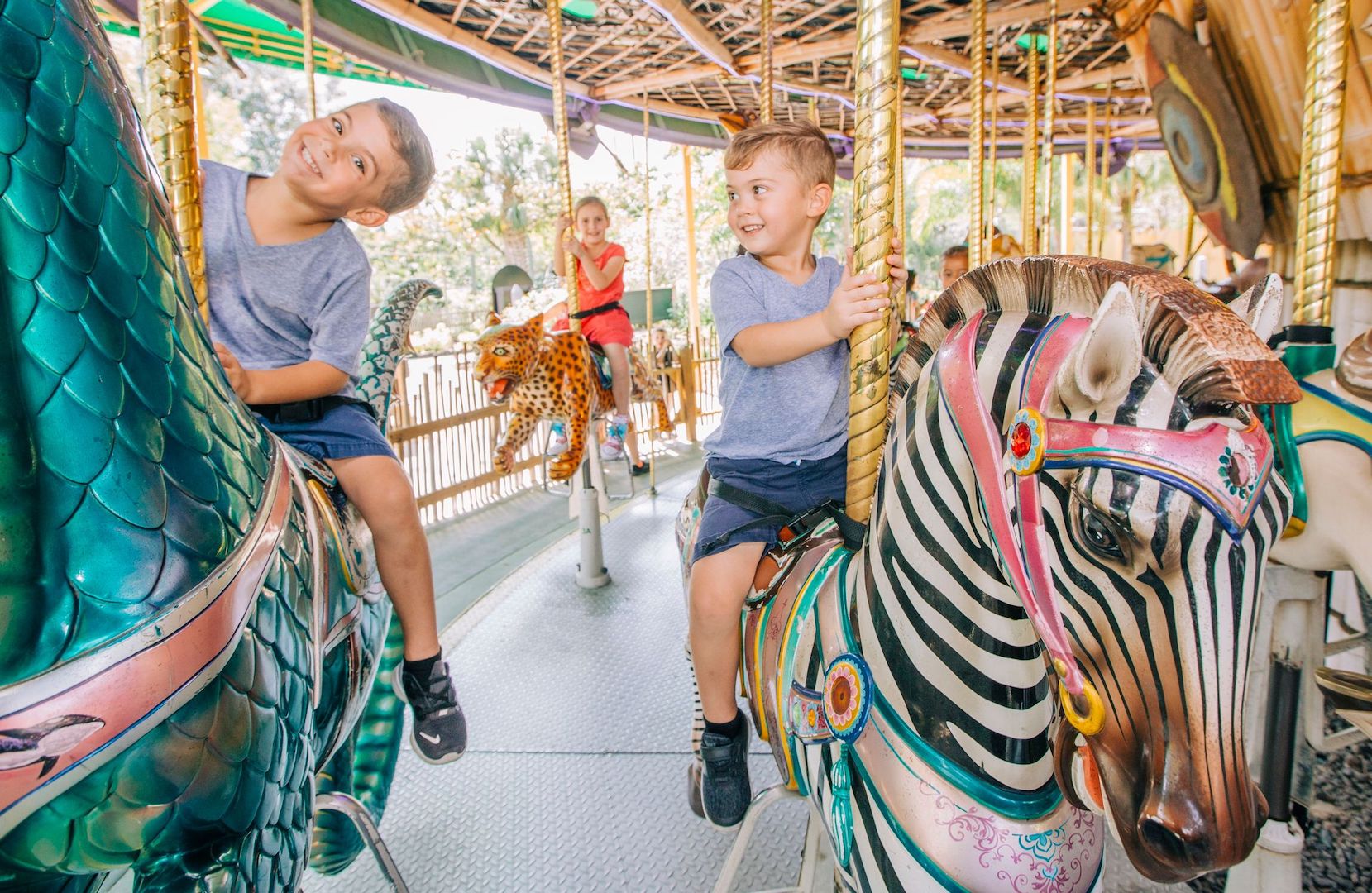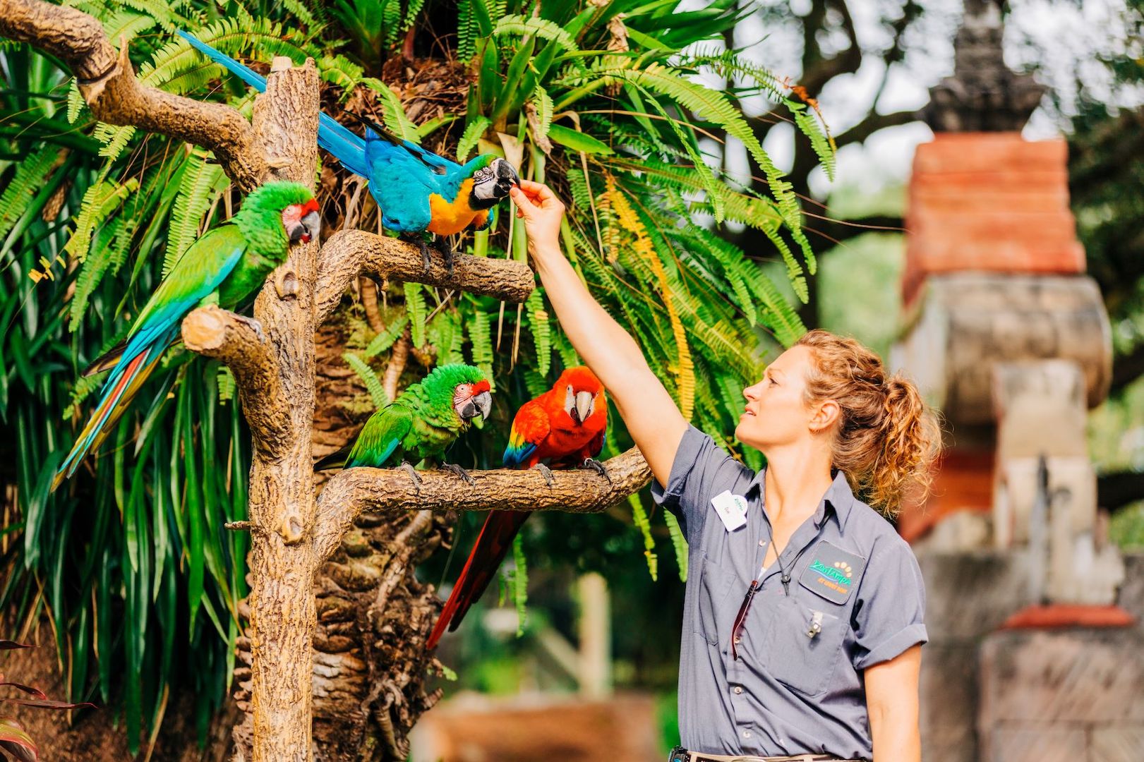 The fun begins as soon as you step foot through the Zoo's Main Entrance! Visit the Main Free-Flight Aviary just inside, or splash around in the Manatee Fountains. You can also grab a bite to eat at Macaw’s Landing, take fun photos with the Zootastic photographers, symbolically adopt an animal at Nature's Kingdom Gift Shop, or simply continue on your adventure to one of our 5 realms.