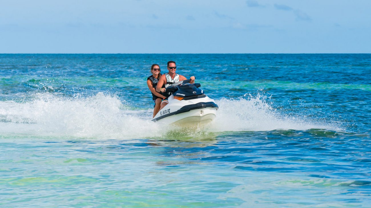 Three guests are allowed per Jet Ski and cannot exceed a total combined weight of 460 lbs (225 kg)